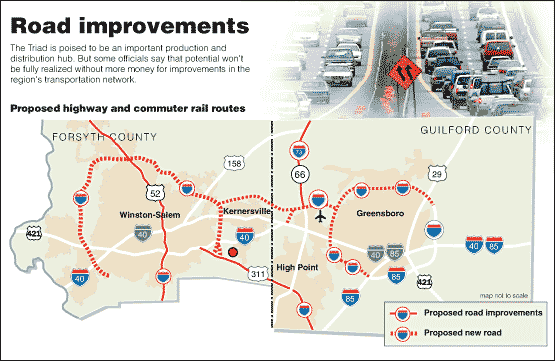 proposed highways can be seen in this map courtesy of the Winston-Salem Journal: